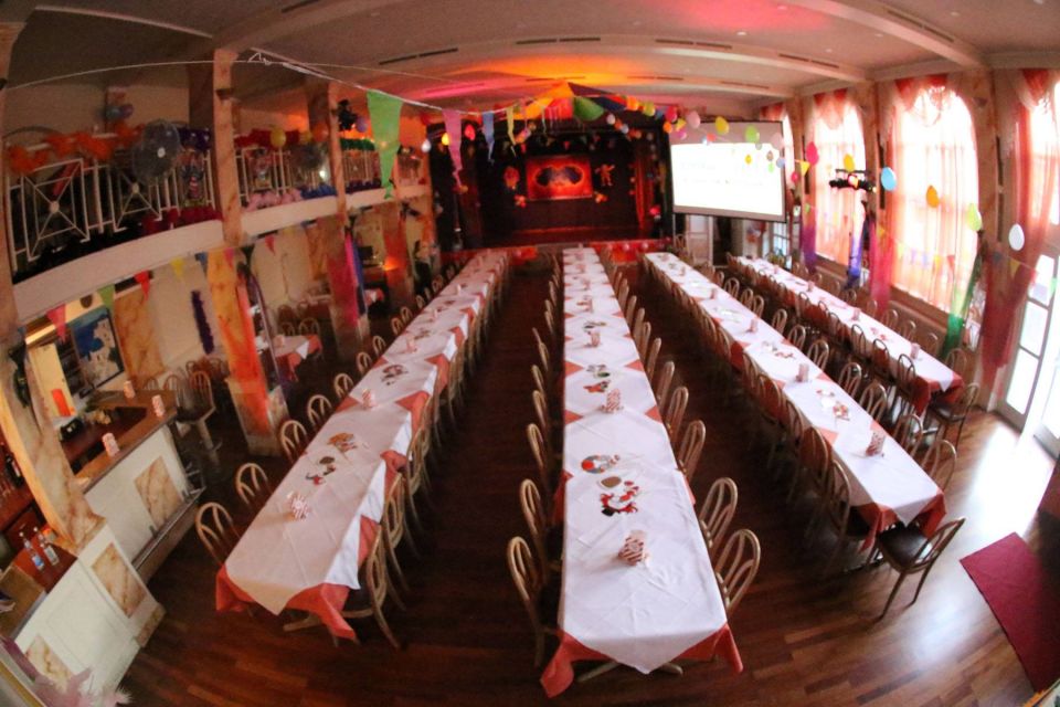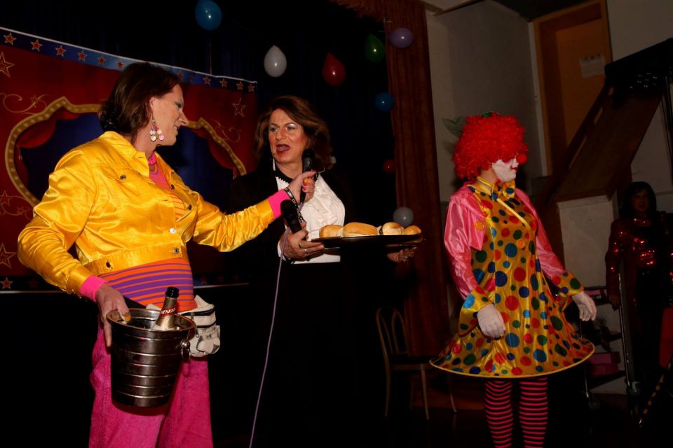 Pünktlich um 18 Uhr war Einlass, in den toll dekorierten Festsaal des „Zirkus der Eitelkeiten“! So konnten alle Gäste bis zum Programmbeginn um 20 Uhr noch ausgiebig plaudern und speisen. Zügig füllte sich der Saal und bald waren alle Plätze eingenommen und das Programm konnte beginnen.